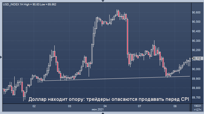 Эти данные помогли удержать доходность облигаций США около недавних минимумов, оказав давление на доллар. Инвесторы теперь ждут данные по потребительским ценам в четверг, чтобы получить новое направление. Но нервы по поводу сильных значений (CPI), которые могут послужить аргументом в пользу снижения стимулирования, также оказывают доллару некоторую поддержку.