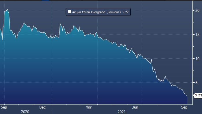 Акции самого крупного в мире китайского застройщика Evergrande на бирже Гонконга за последний год