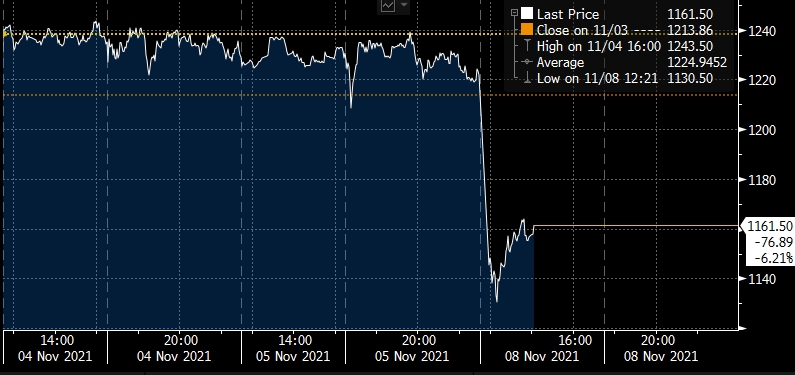 Акции производителя электромобилей (TSLA.O) снизились на 6,2% до 1146,43 доллара. Акции, котирующиеся во Франкфурте, упали примерно на 7% до 989,10 евро.